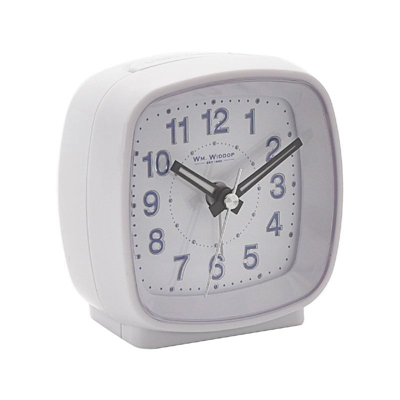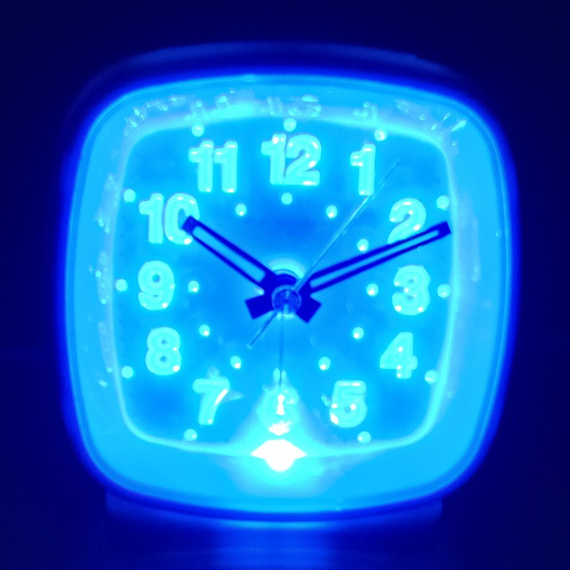 Tyylikäs herätyskello ”äänettömällä” -koneistolla ja kellotaulun LED-valolla. Muovirunkoinen.
