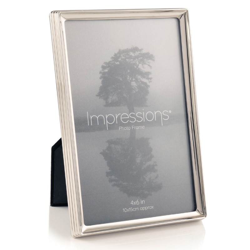 Klassinen tyylikäs, pelkistetty kehys. Metallirunkoinen. Kehyksen reuna on uritettu. Hopeoitu ja suojalakattu tummumisen estämiseksi.