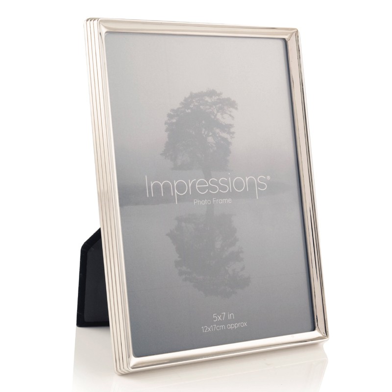 Klassinen tyylikäs, pelkistetty kehys. Metallirunkoinen. Kehyksen reuna on uritettu. Hopeoitu ja suojalakattu tummumisen estämiseksi.