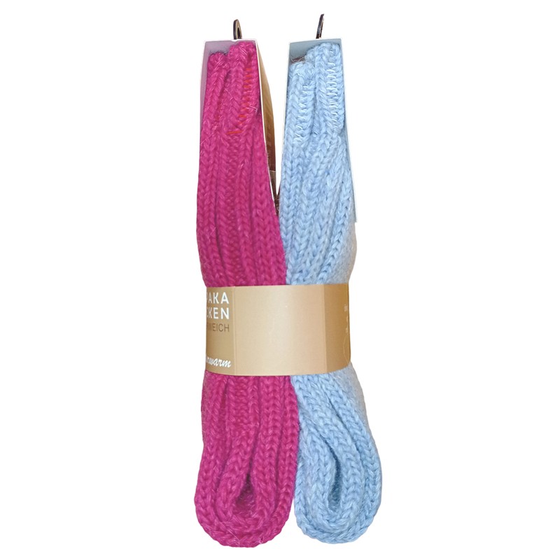 Pehmeä ja lämmittävä alpakan ja lampaanvillan sekoitesukka. Hyvä istuvuus. Hengittävä rakenne. Sukka vastaa paksuudeltaan villasukkaa. Nipussa on kaksi sukkaparia, toinen pinkki toinen vaalean sininen. Hinta on nipun eli kahden sukkaparin hinta.