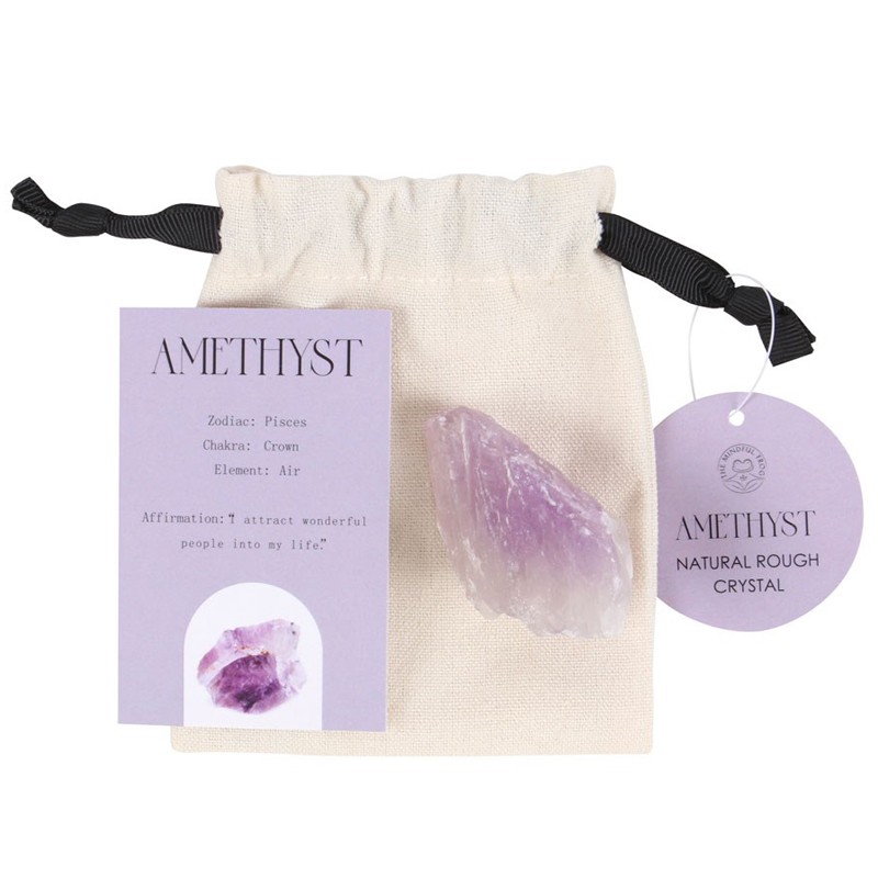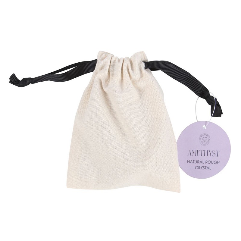 Ametisti, raakakivi. Koska kyseessä on luonnonkivi, niin jokainen pala on hieman erilainen. Mukana tulee englanninkielinen ametistin luonteesta ja parantavista voimista kertova lappunen.