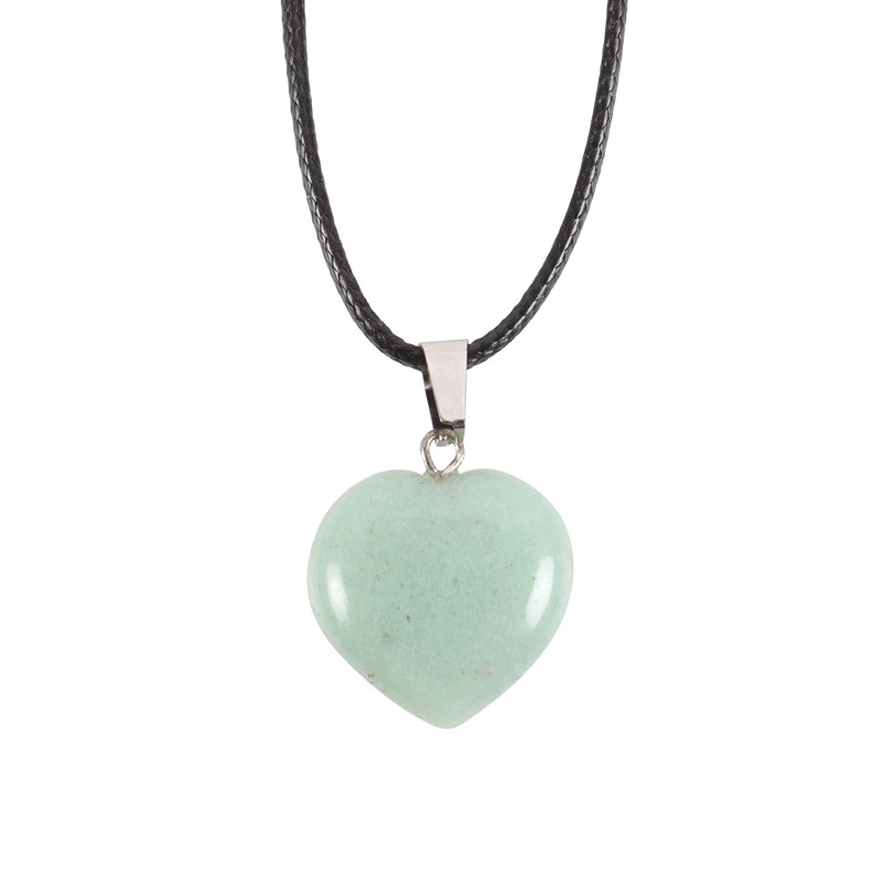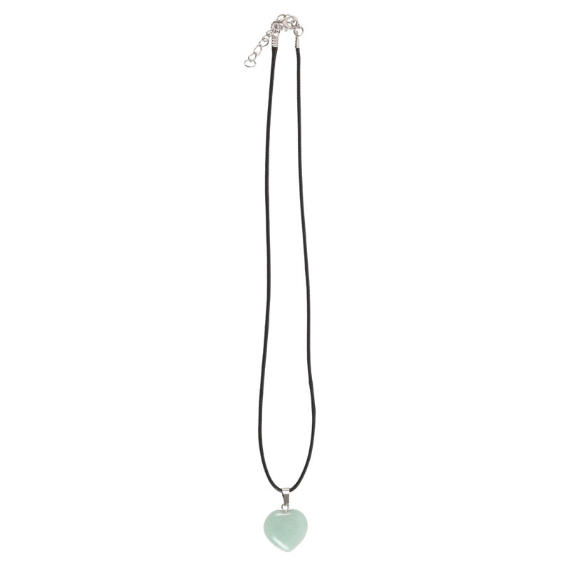 Aventuriinikivestä hiottu sydämenmuotoinen kaulakoru. Punottu kaulanauha, säädettävä pituus.