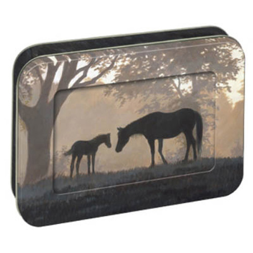 Laadukkaat hevoskortit. Neljä erilaista korttia. Kutakin kuvaa on 3 kpl ja yhteensä kortteja 12 kpl. Korttien mukana tulee sävyyn sopivat kirjekuoret. Kortit ja kirjekuoret on pakattu peltiseen rasiaan,. Rasian kannessa on lokero, johon voi laittaa lahjansaajan valokuvan tai muun tervehdyksen.