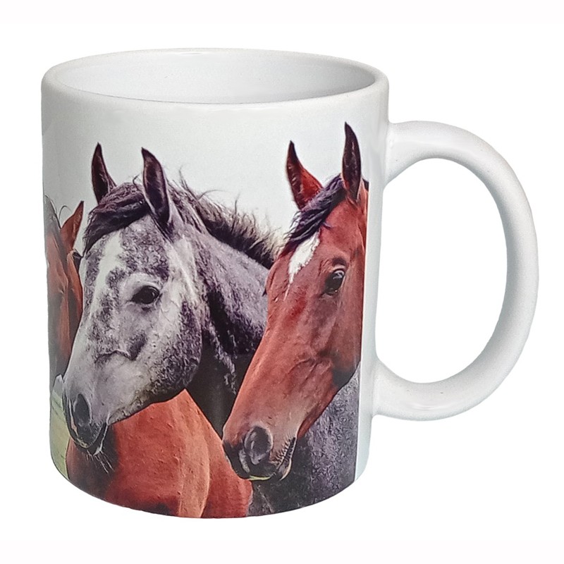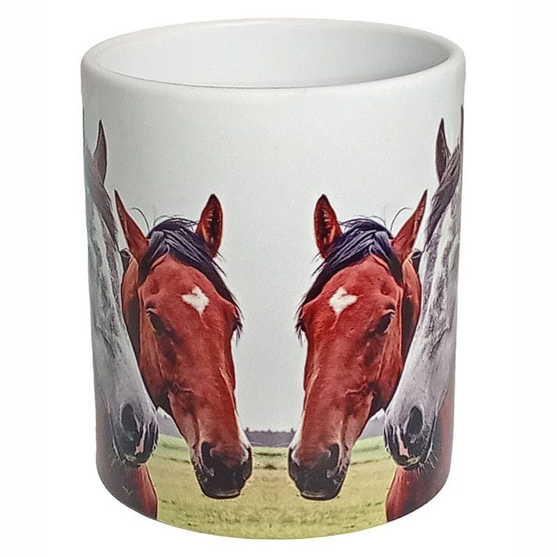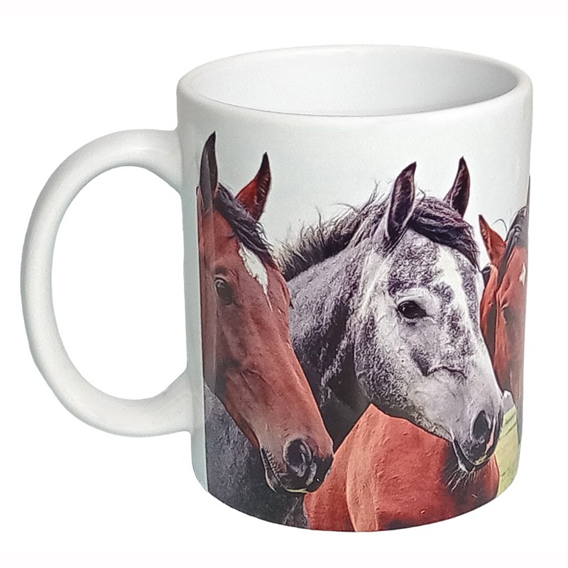 Upea hevoskuva. Kuva on mukin molemmilla puolilla. Hevonen