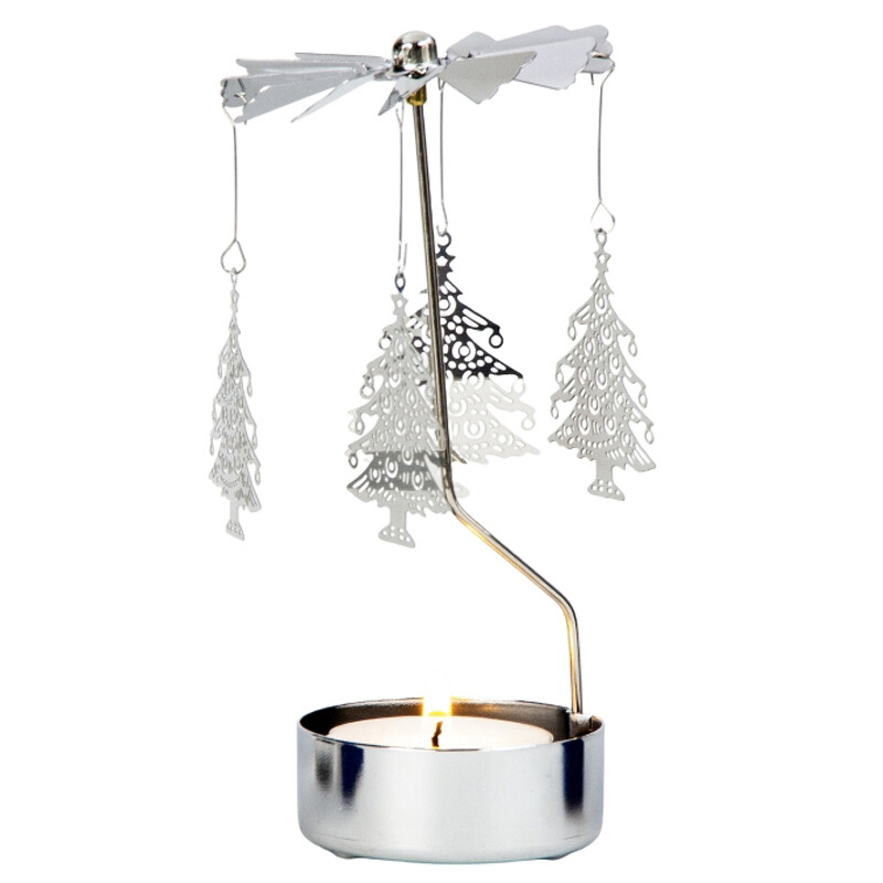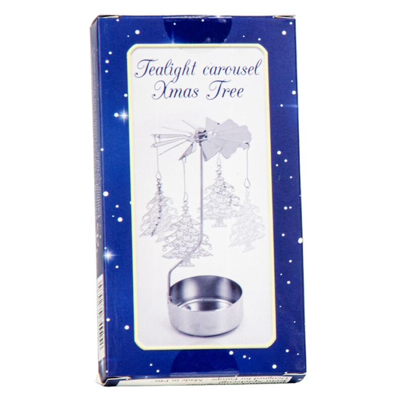 Tuikkukuppiin laitettava lämpökynttilä pyörittää lämmöllään joulukuusipiiriä.