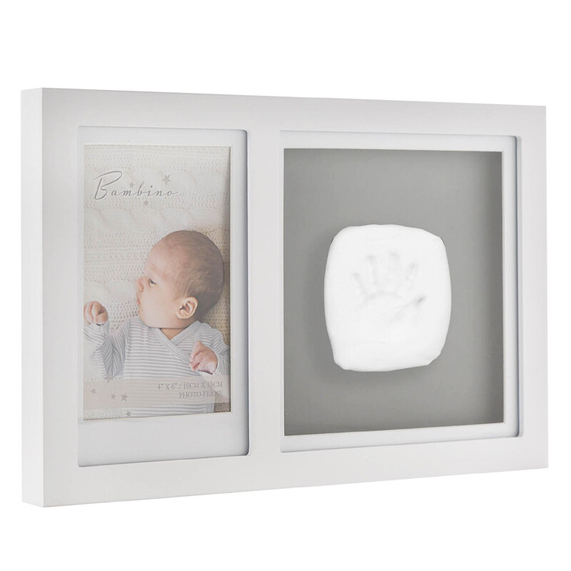 Ikuista pienokaisen käden- tai jalanjälki kehykseen. Paina lapsen jalan ja/tai kädenjälki pakkauksen mukana tulevaan kipsimassaan.