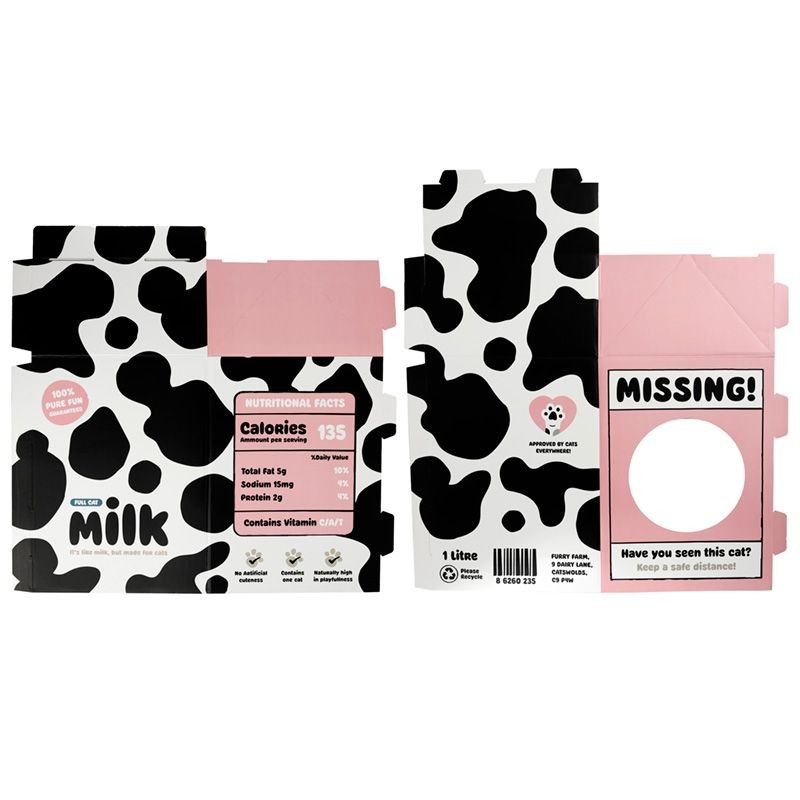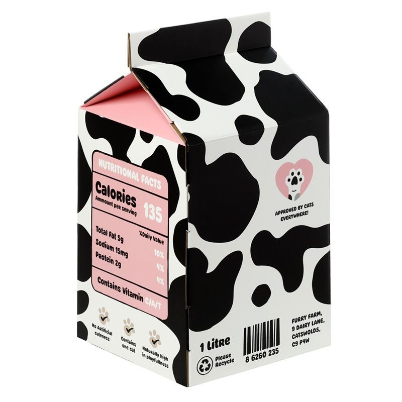 Uusi loistava tuoteidea! Kartongista valmistettu maitopurkinmuotoinen kissan piilopaikka. Kissat tykkäävät mennä piiloon.