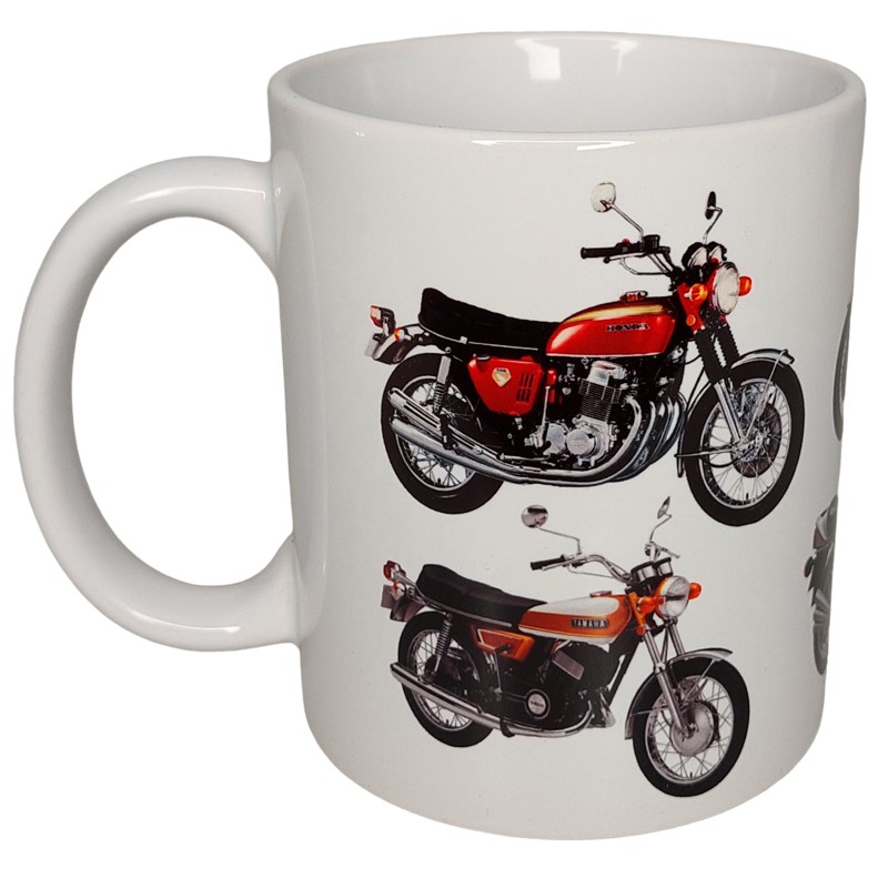 Mukin kuvituksena on 1970-luvun suositumpia moottoripyöriä.
