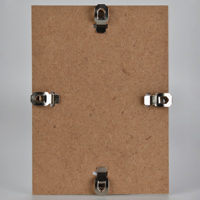 Klassikkomalli ilman reunakehystä. Kuva laitetaan heijastamattoman lasin alle klipsien avulla.