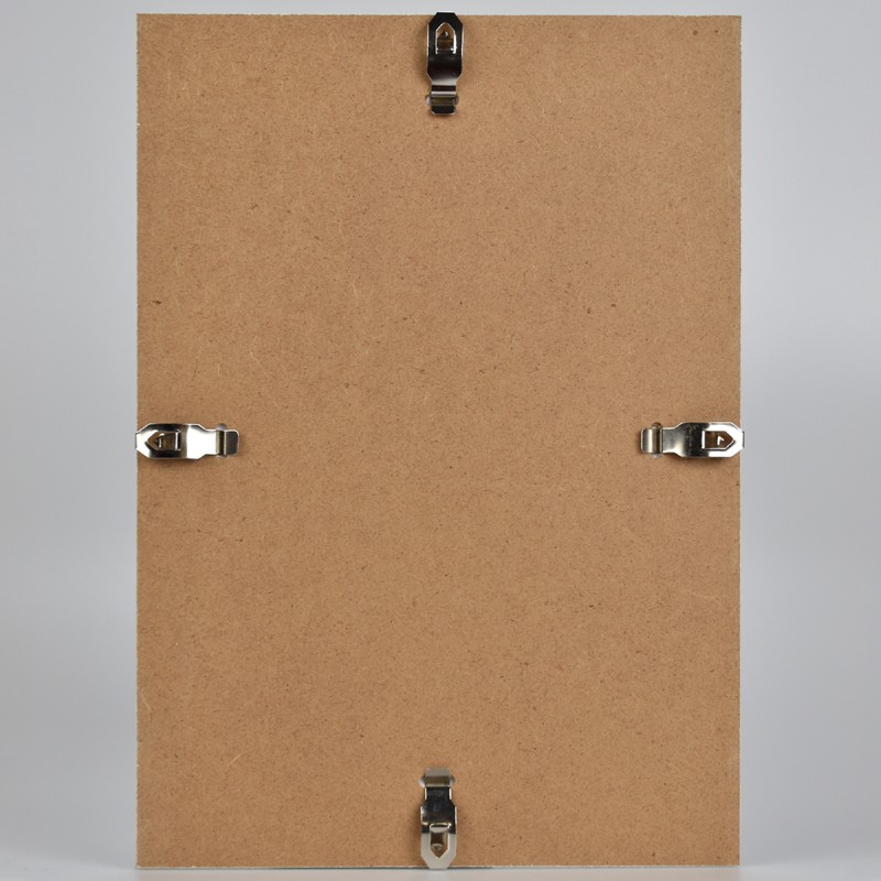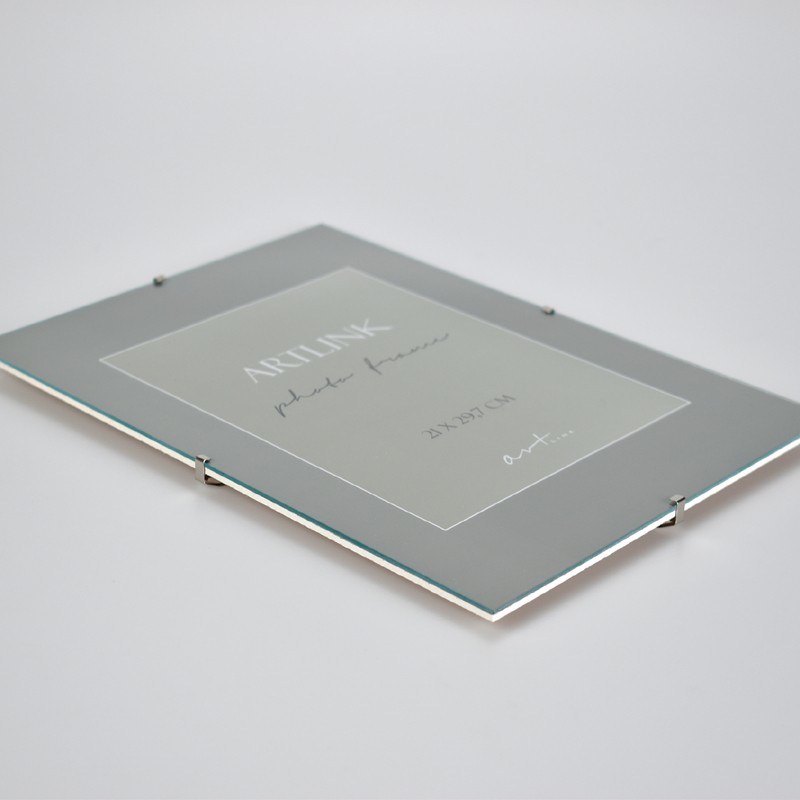 Klassikkomalli ilman reunakehystä. Kuva laitetaan heijastamattoman lasin alle klipsien avulla.
