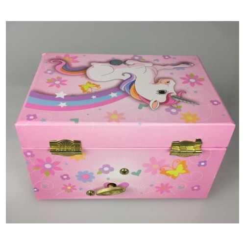 Korurasia, joka on myös soittorasia. Kansikuvassa yksisarvinen. Sisäpinnoiltaan rasia on pehmustettu pinkillä tekstiilillä. Kannen sisäpinnalla on 7 cm korkea ovaali peili, jonka edessä balleriina tanssii musiikin soidessa.