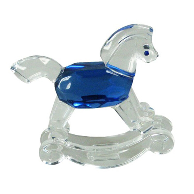 Mukava kristallinen keinuhevonen, jonka vartalo-osa on sävytetty siniseksi.