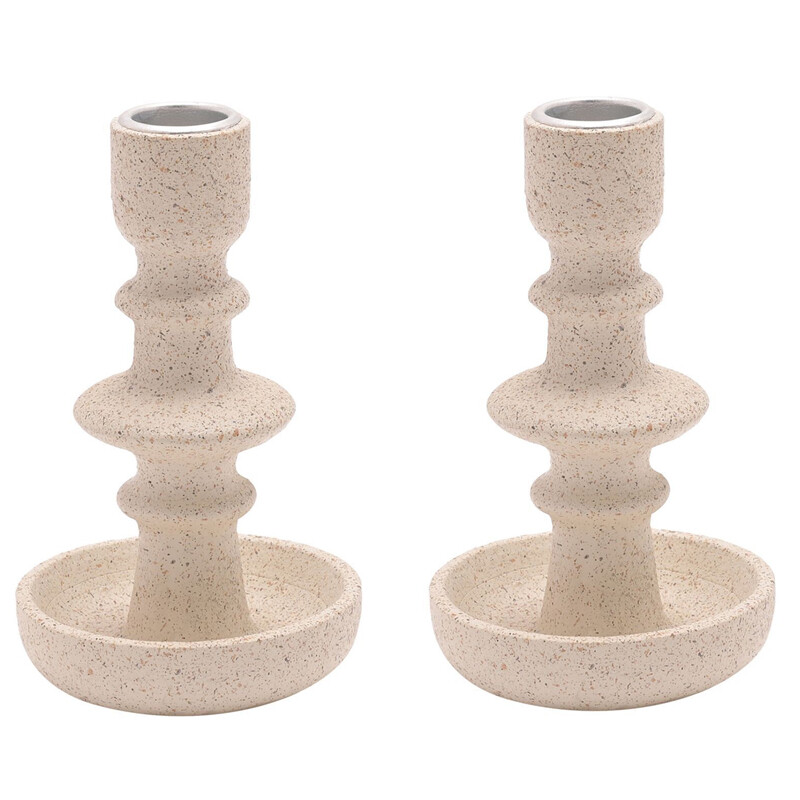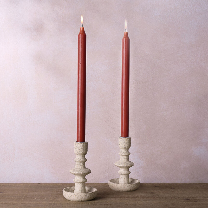 Kaksi kynttilänjalkaa. Pinta on tehty muistuttamaan kiveä. Pakkauksessa on kaksi kynttilänjalkaa. Hinta on pakkauksen eli kahden kynttilänjalan yhteishinta.