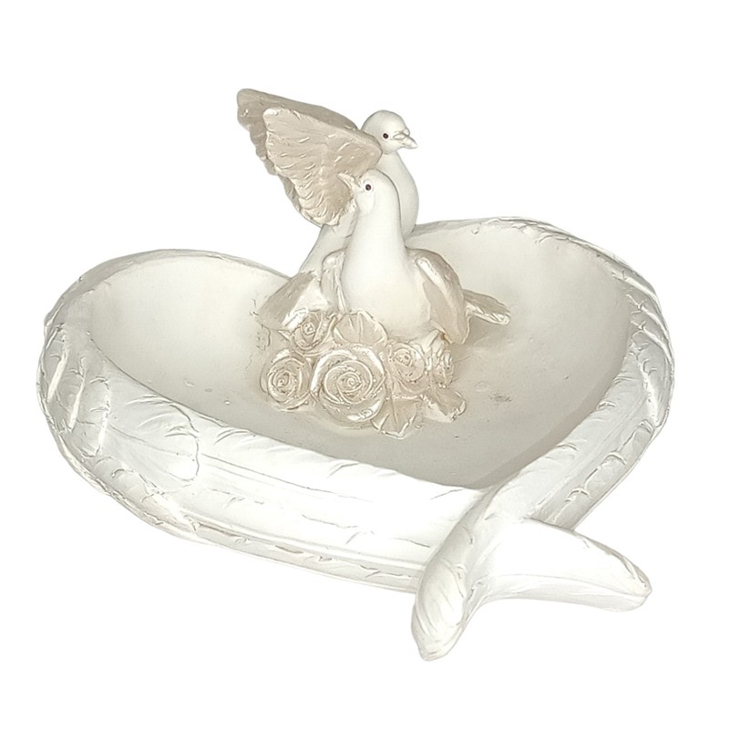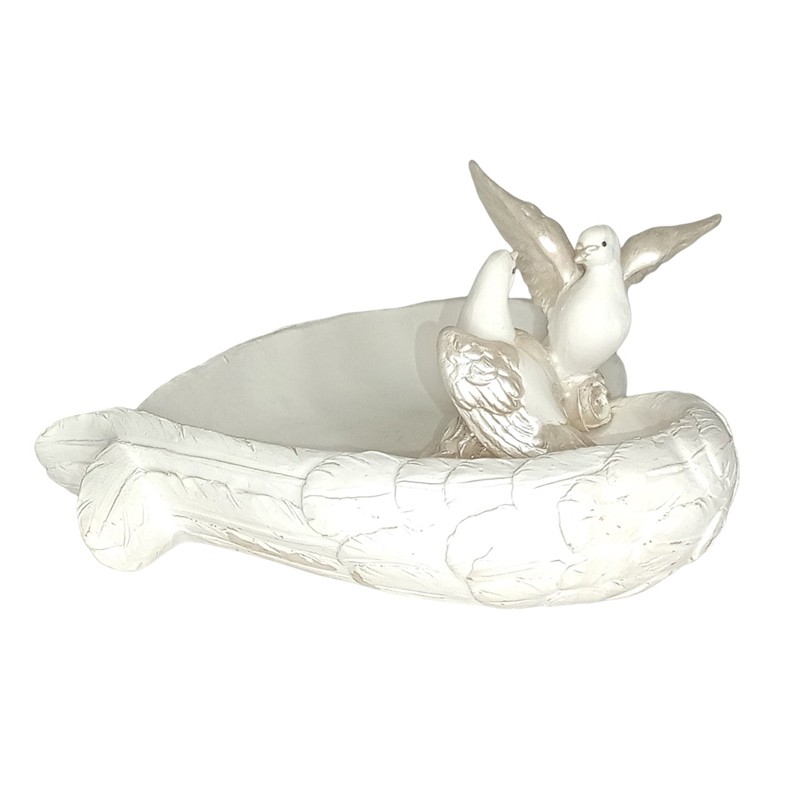 Kaunis kyyhky-koristeinen malja. Enkelin siivet taivutettu maljan muotoon. Sopii esimerkiksi hääpöydälle koristeeksi.