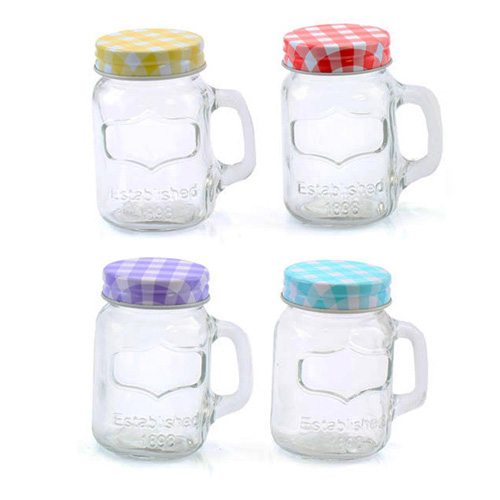 Pienet lasituopit. Näihin voi laittaa hilloa ja marmelaadia tai tehdä niihin omat sinapit. Pakattu läpinäkyvään lahjapakkaukseen, jossa on neljä tuoppia.