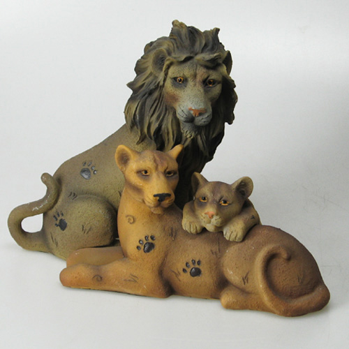 Kolmen leijonan muodostama perhepotretti. Leijonat ovat toisistaan irrallaan, joten ne voi astella haluamallaan tavalla.