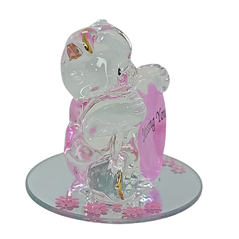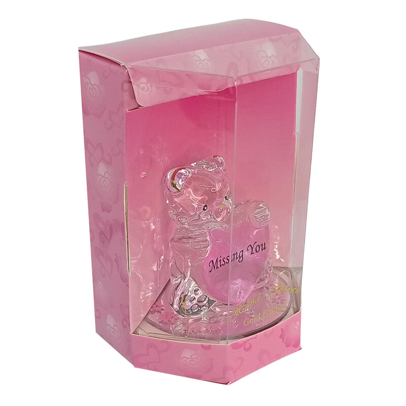 Kultakoristeltu lasinalle pitelee sylin täydeltä lasista sydäntä, jossa lukee ”Missing You”. Ihana lahja tärkeälle ihmiselle!