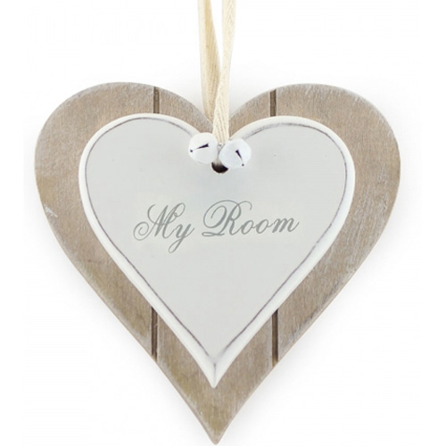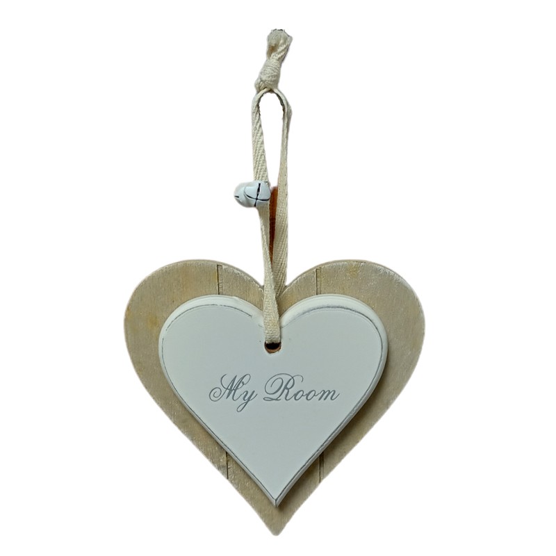 Puinen oviriipus, joka osoittaa huoneen haltijan ”My Room”. Lisäkoristeena pienet kulkuset.