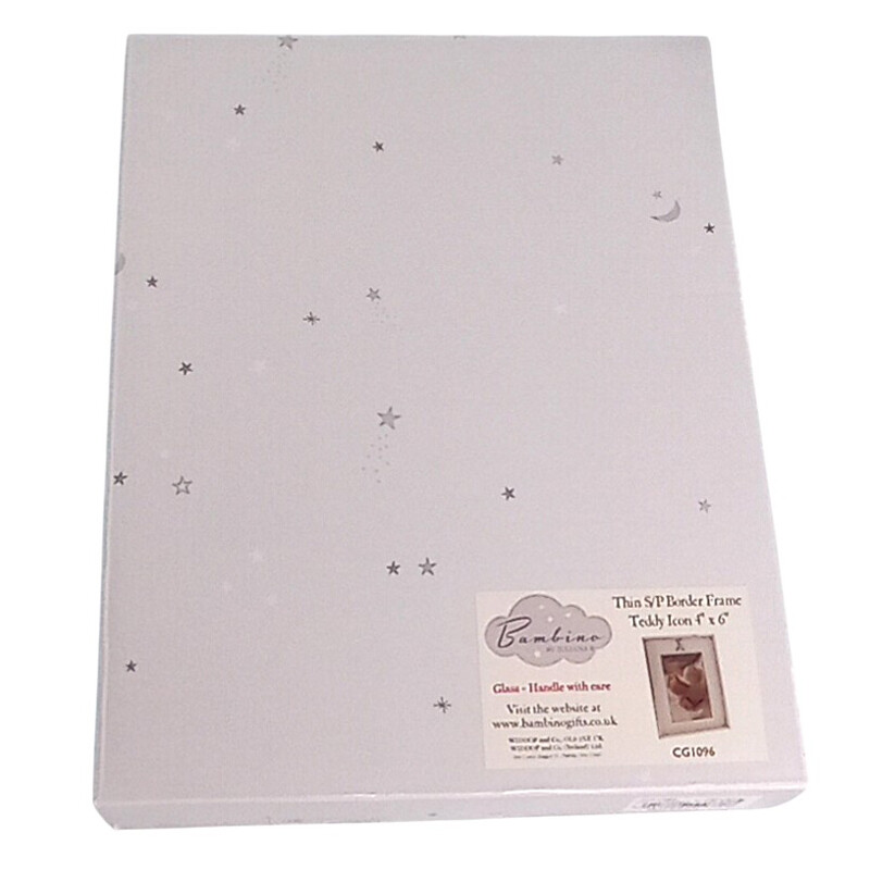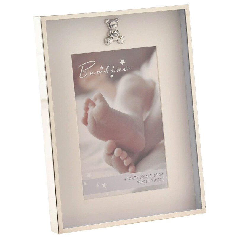 Upea kehys pienokaiselle! Hopeoitu nallekoriste, jossa zirkon-timantti. Kuvatila on lasin alla. Upea ristiäislahja!