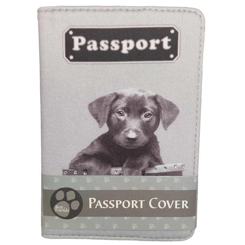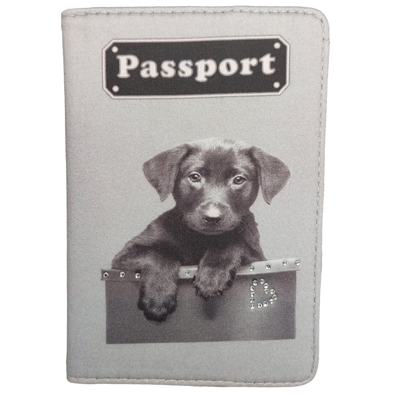 Suojaa passisi hauskalla koira-aiheisella passinkansilla. Lisäkoristeena on pieniä timantteja.