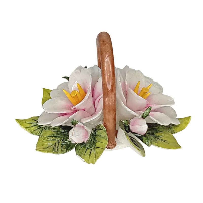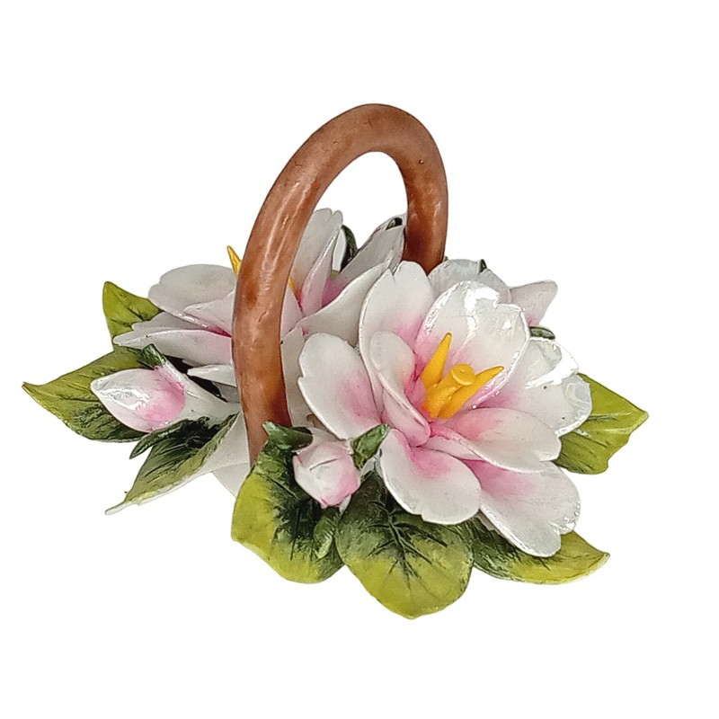 Pieni kirsikankukka-asetelma. Taidokkaasti käsintehtyä posliinia ja kukan terälehdet lakattu kiiltävällä lakalla. Huolellisesti pakattu kovaan lahjarasiaan.