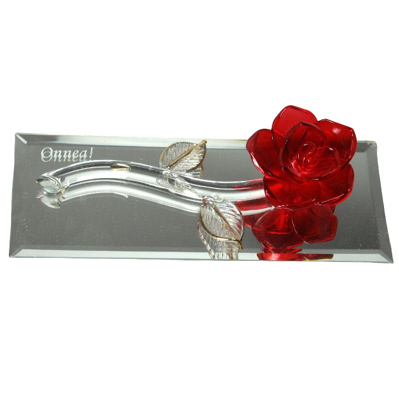 Peilin päällä on 22 karaatin kultauksin koristeltu lasiruusu. Peilin pintaan on kirjoitettu sana ”Onnea”, joten tuote sopii moneen tarkoitukseen.