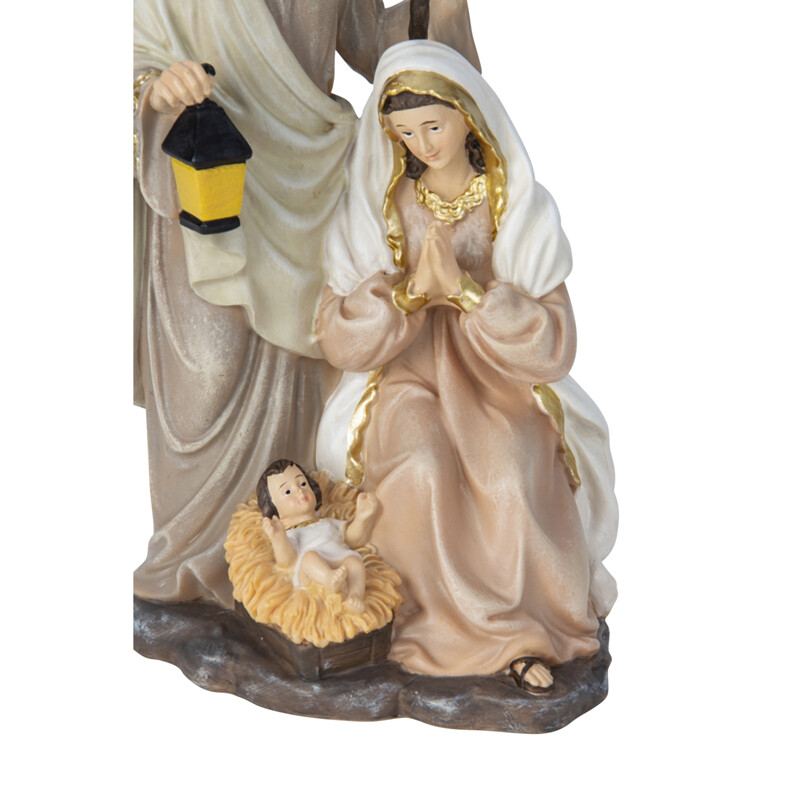 Perinteinen, kiinteä seimiasetelma, jossa Jeesus-lapsi, Maria, Josef.