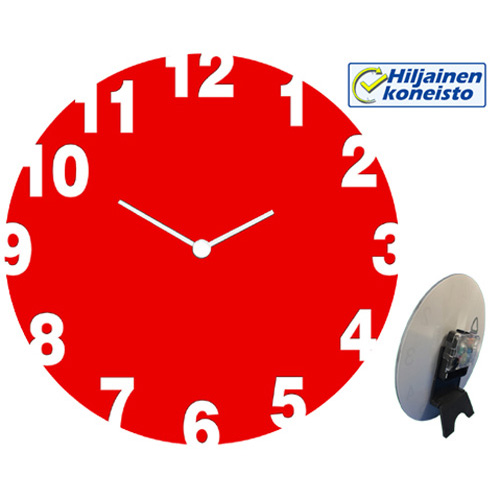 Kellotaulu on tyylikkään punainen. Kellossa on seinäkiinnitys ja lisäksi mukana tulee pöytätuki, jonka avulla kellon voi laittaa pöydälle, kirjahyllyyn, ikkunalaudalle…