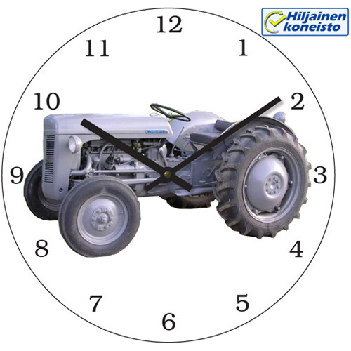 Seinäkello, jossa on 1940- ja -50 -lukujen suosikkitraktorin harmaan Fergusonin kuva. Tässä on nostalgiaa!