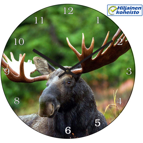 Seinäkellossa kuvana on metsiemme uljain eläin, hirvi.