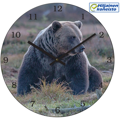 Seinäkellossa kuvana on metsiemme kuningas, karhu.