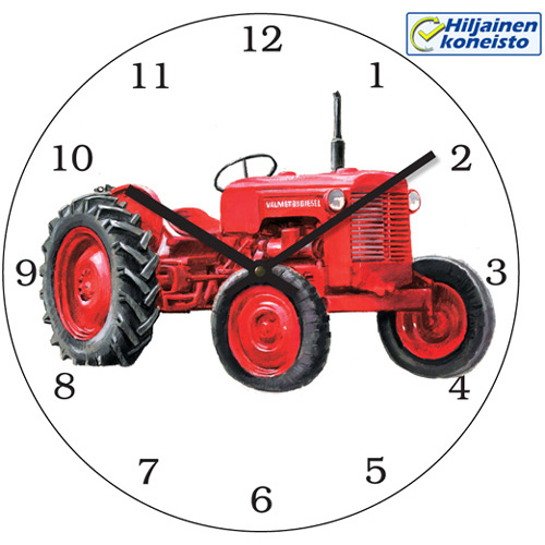 Seinäkello, jossa on Valmetin traktorimallia 33D.