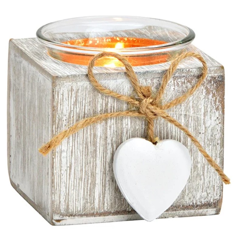 Kaunis tuikkualunen yhdelle lämpökynttilälle. Koristeena sydän.