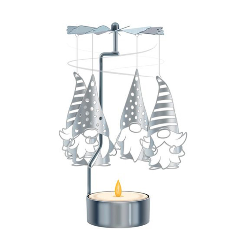 Tuikkukuppiin laitettava lämpökynttilä pyörittää lämmöllään tonttupiiriä.