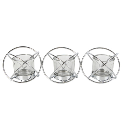 Kromatusta metallitangosta taivutetut pallot. Kolme palloa yhdessä. Pallon sisällä on paksusta lasista tehty tuikkukuppi. Tyylikäs!