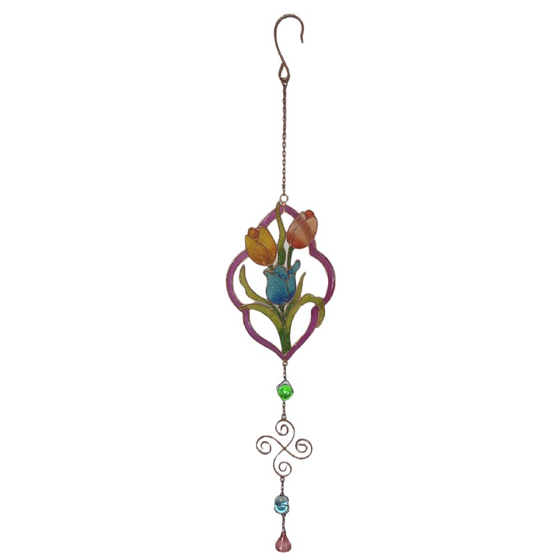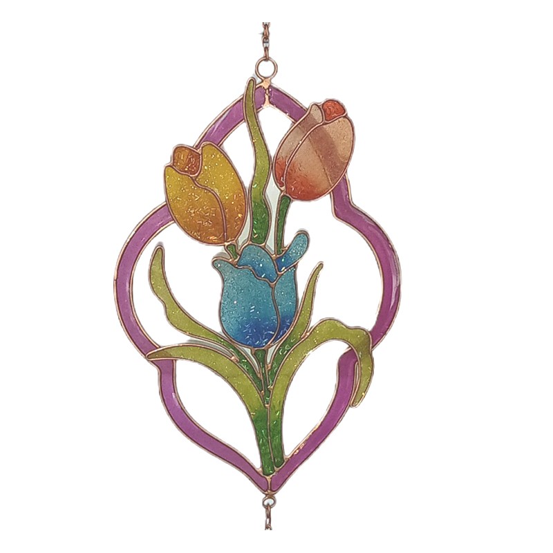 Riipus on toteutettu kaksitasoisena ja on hilekimalteinen. Tulppaanikimppu on aseteltu kuin kehyksiin.