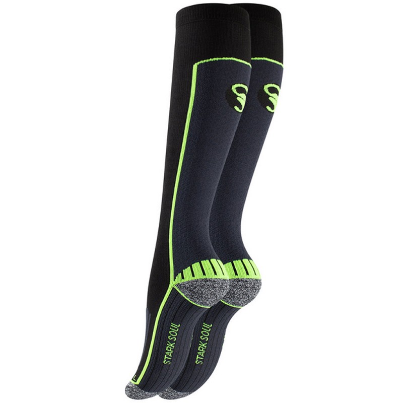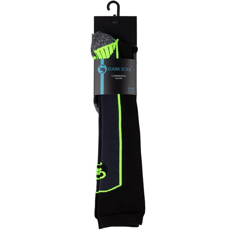 Sukkien puristavuus tukee verenkiertoa ja lihasten palautumista. Pohjissa on erityinen AIR-kanavajärjestelmä, joka parantaa sukkien ilmanvaihtoa. Optimoitu pehmuste pohkeiden, jalkapohjan, kantapään ja varpaiden alueella suojaa hiertymiltä ja rakkuloilta. Kapeat, mutta joustavat sukansuut pitävät sukat paikallaan. Teknisesti optimoidun materiaaliyhdistelmän ansiosta sukilla on ilmanvaihtoa säätelevä, hajua estävä ja kosteudensiirtoa parantava ominaisuus. Nopeasti kuivuva. Rypytön istuvuus elastaanin ansiosta. Pehmustettu pohja vaimentaa iskuja. Nämä polvisukat ovat ihanteellisia urheiluun sekä urheilun jälkeiseen palautumisvaiheeseen – ne tukevat jalkojen lihaksia ja verenkiertoa ja nopeuttavat palautumista. Tukisukka