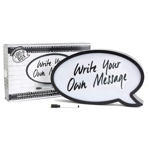Valotaulu jonka etuseinään voi kirjoittaa oman viestin. Mukana tussi ja pyyhekumi. Seisoo itsekseen tai sen voi ripustaa seinälle.