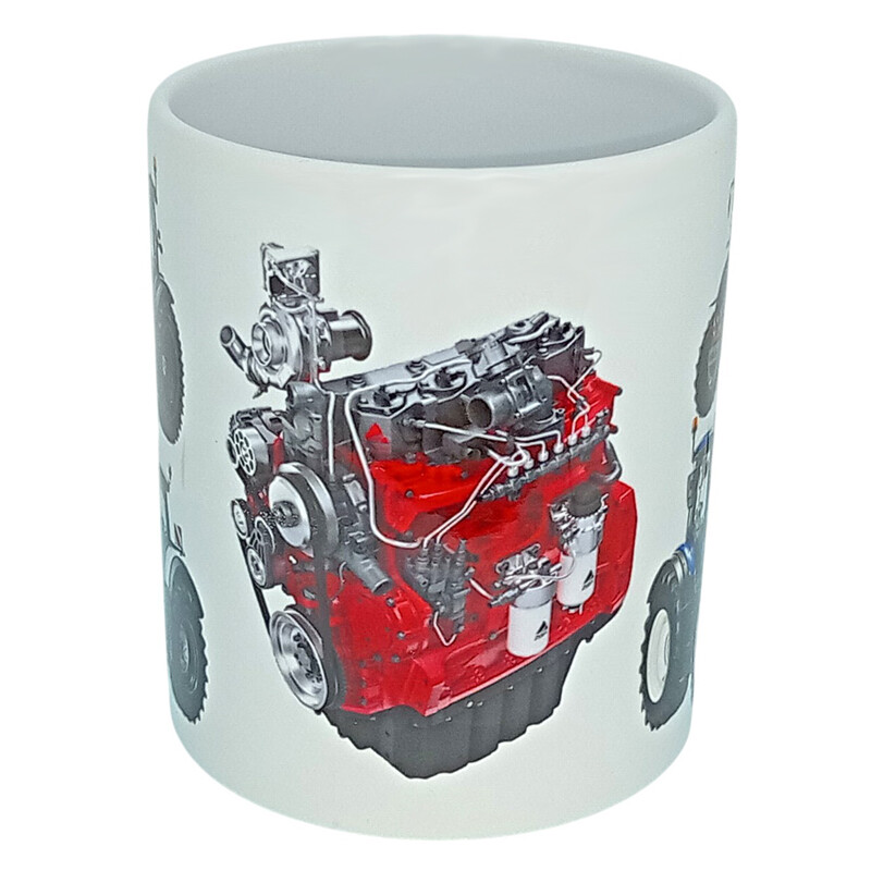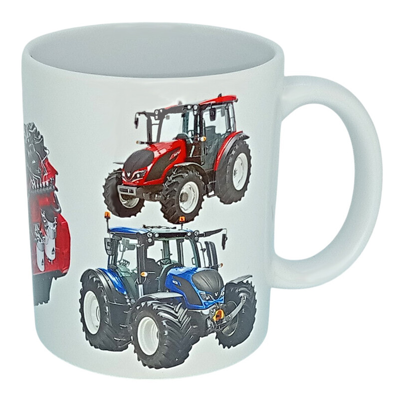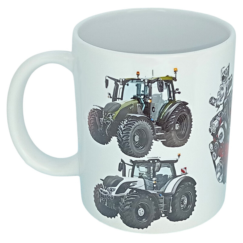 Tukevanmallinen muki on lasitettua posliinia. Mukin kuvat ovat uusimmista Valtra -malleista.